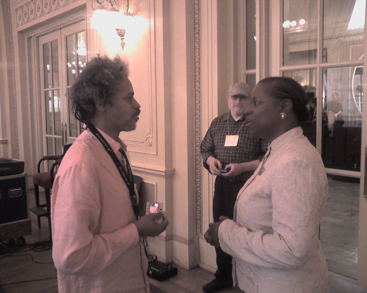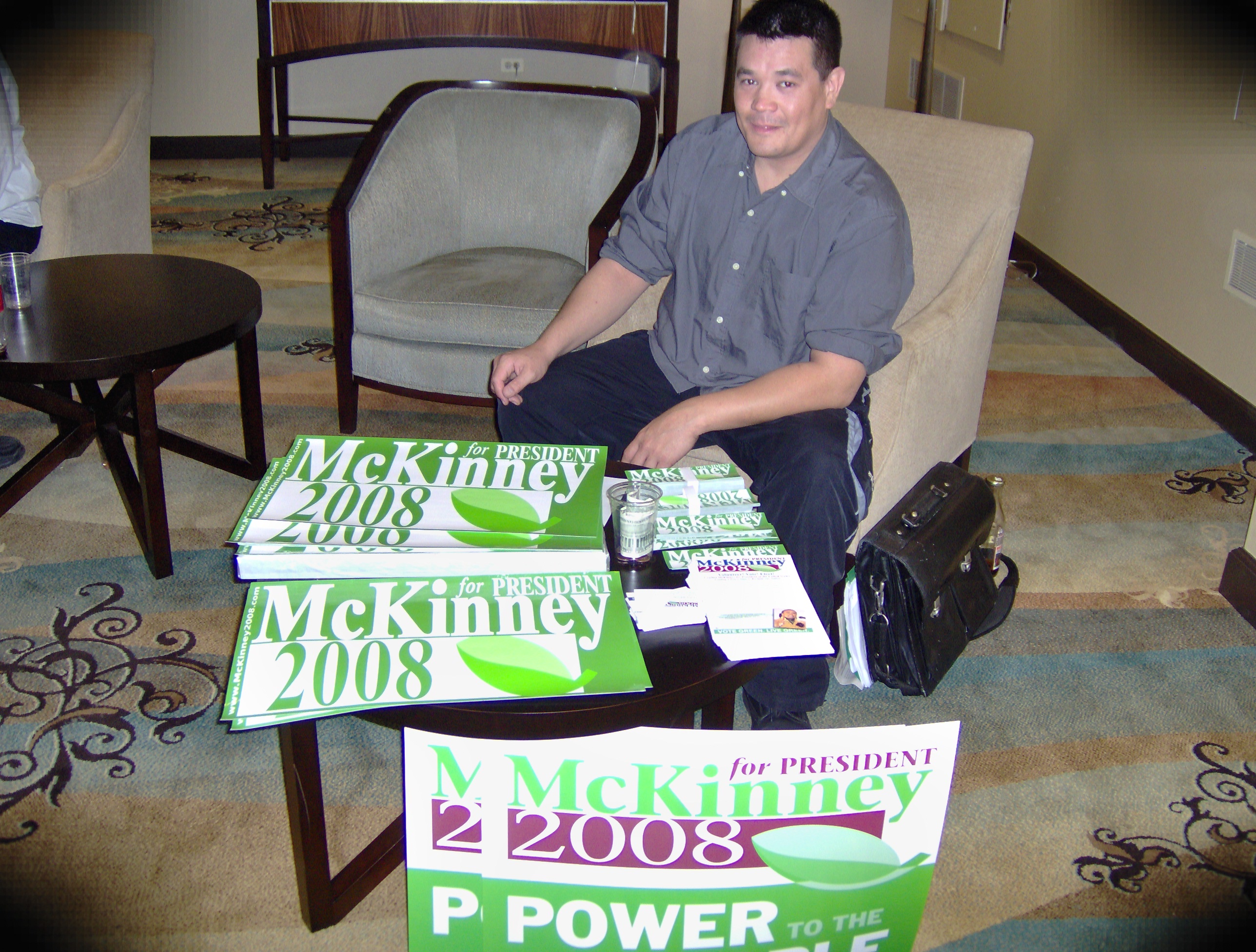 Jim, a Cynthia McKinney volunteer. Hallway of the convention hotel.
