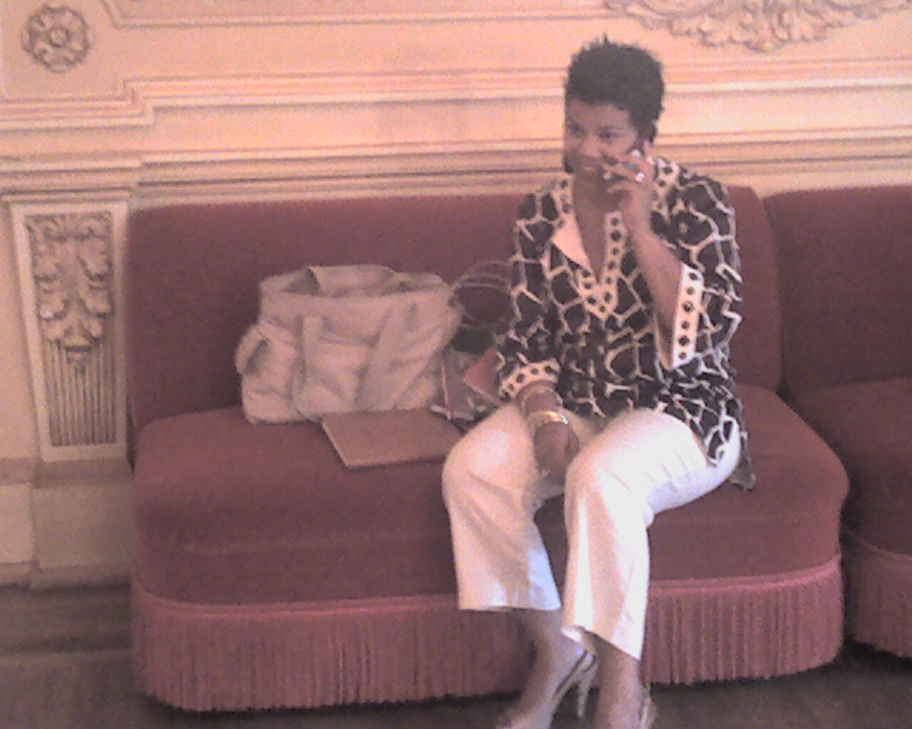 In the press room, Green Vice Prez candidate Rosa Clemente on the phone