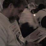 Asa Gordon studies one of his famous map charts. Chicago 2008.