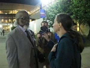 I missed witnessing Green Party President candidate Jill Stein be arrested for trying to get into the debate. (Stein and Honkala were released the next day. One of the Stein campaign press releases is at the bottom of this post.) When we went into the Hofstra Adams Playhouse to see the pre-debate discussion, I also saw a clueless Hofstra media professor describe Stein as only a “Green Party protester” who got arrested because she didn’t have credentials. We switched to the live Democracy Now! show at the Monroe Lecture Hall. Amy Goodman more than made up for Hofstra’s negligence by continually mentioning the arrested, saying she hopes Dr. Stein will be free for the expanded debate on